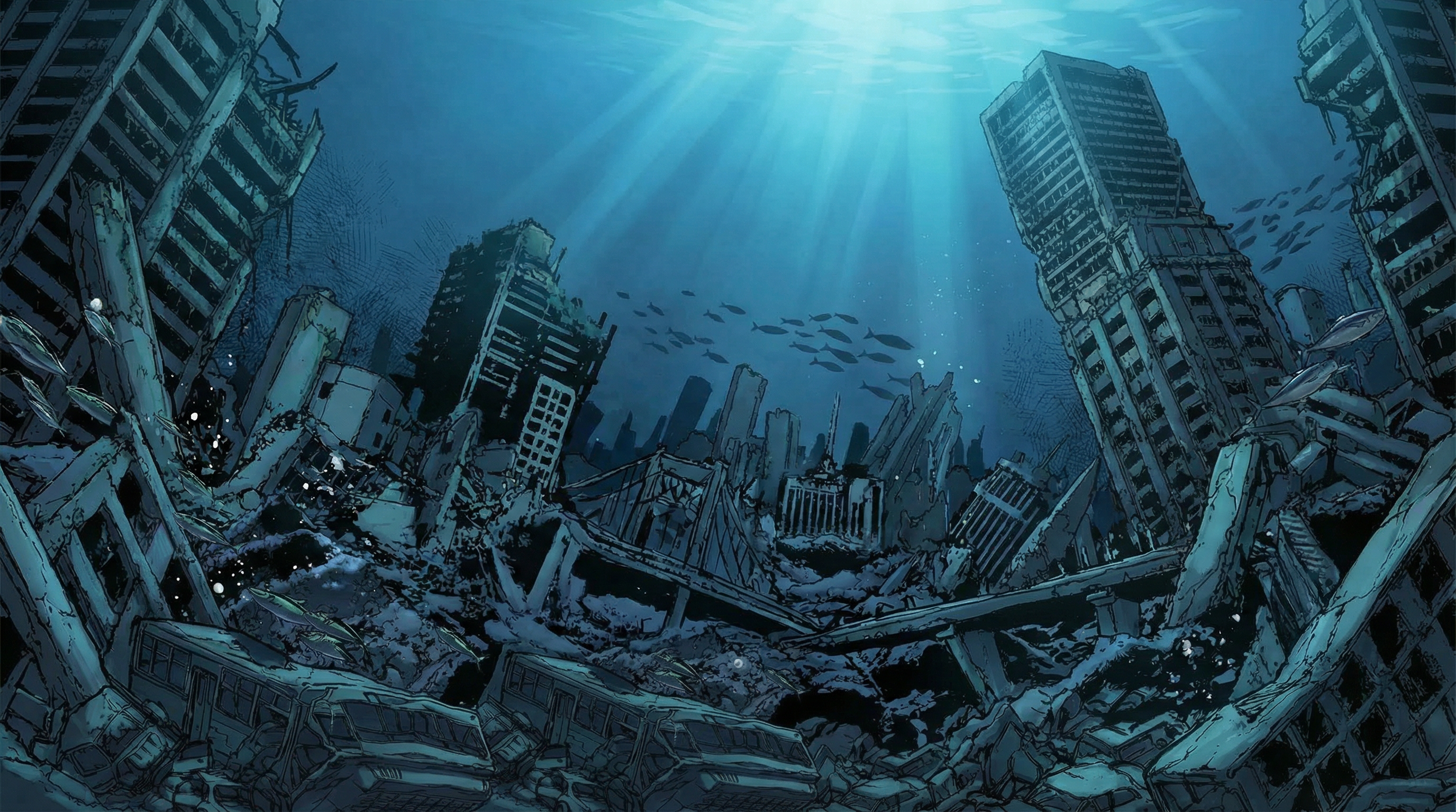 The same environment — raw manga linework on the left, CurtainCall's AI render on the right. Drag the handle to compare.
