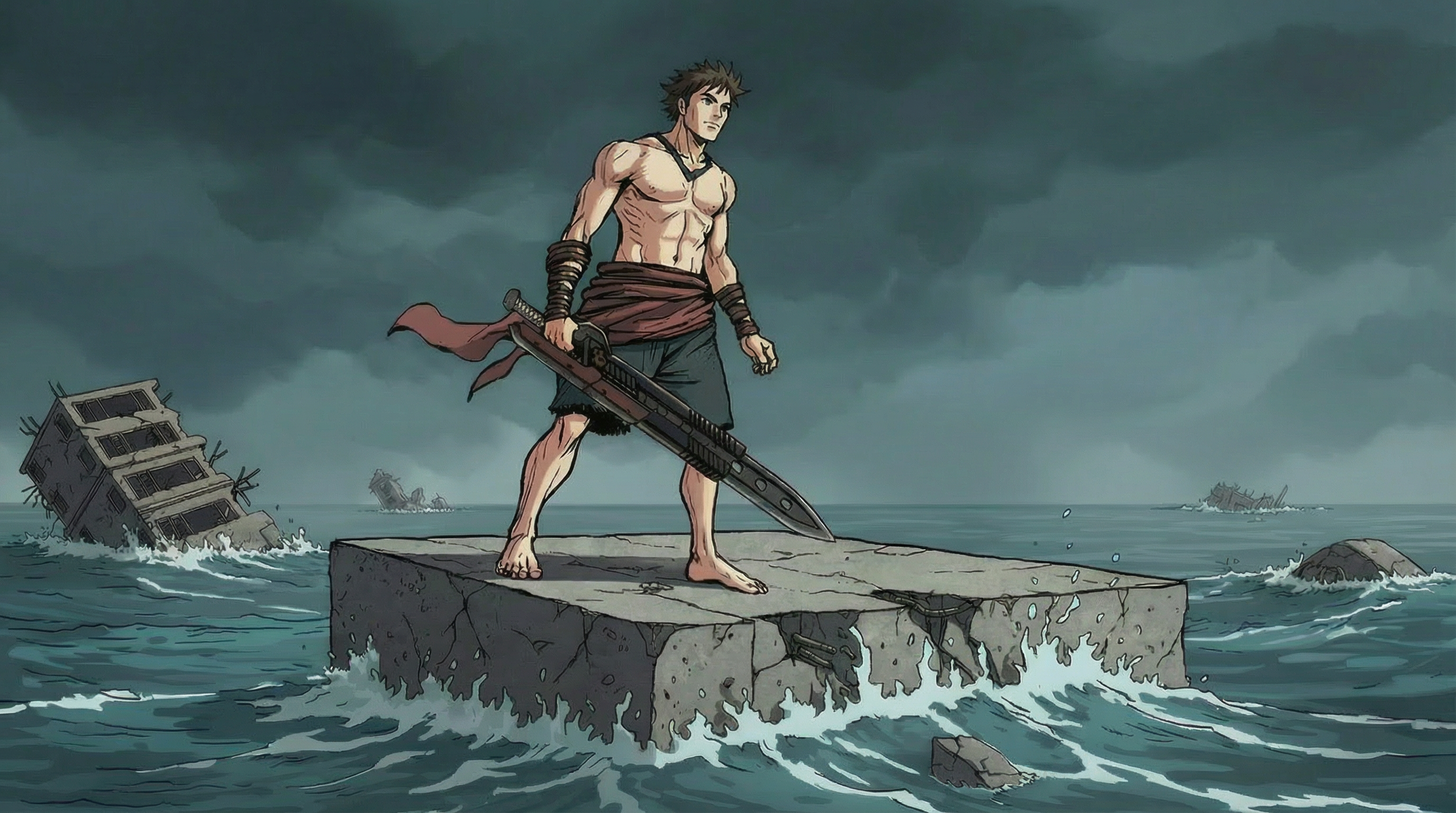 The same environment — raw manga linework on the left, CurtainCall's AI render on the right. Drag the handle to compare.